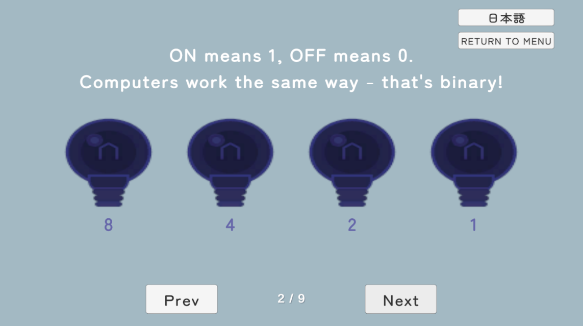 Made by a Japanese indie developer as a fun way to learn binary ♥